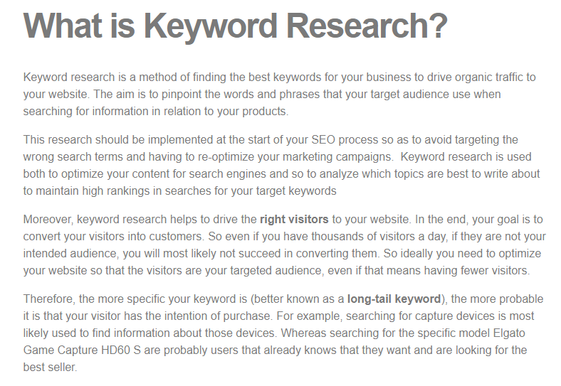 ‘Keyword research is a method of finding the best keywords for your business to drive organic traffic to your website. The aim is to pinpoint the words and phrases that your target audience use when searching for information in relation to your products.’
